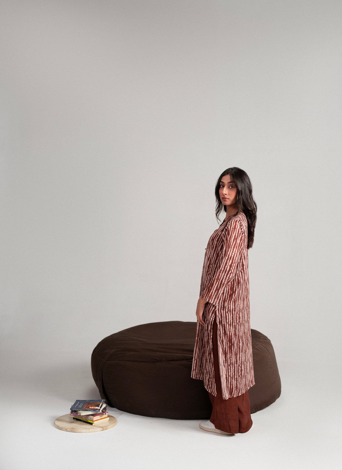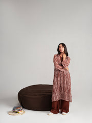 3 pc set with a top loose style long shirt made on Chiffon with an elegant neckline.Paired with a solid bottom shirt & pants made on PP lawn